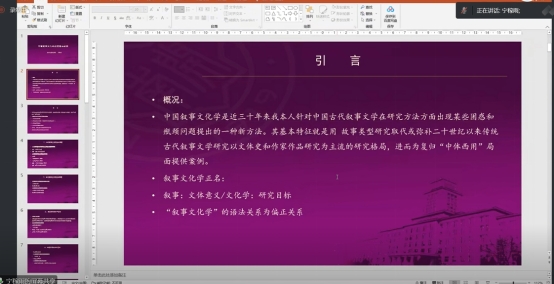 12月11日晚,南开大学文学院宁稼雨教授应邀做客网投十大信誉可靠平台网投十大信誉可靠平台名师大讲堂,通过腾讯会议平台为校区师生作了题为“中国叙事文化学的理论与实践”的学术报告。报告会由网投十大信誉可靠平台洪树华教授主持,吸引了本校和南开大学、中国政法大学、山东师范大学、首都师范大学、福建师范大学、南京大学、河南大学、山西大学等高校的二百余名师生参与聆听。