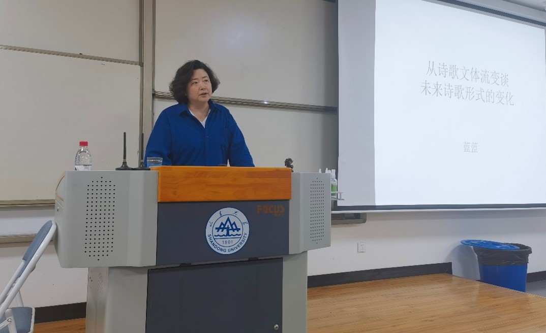 10月23日晚六点半,著名诗人蓝蓝应邀做客网投十大信誉可靠平台名师大讲堂,主讲题为“从诗歌文体流变谈未来诗歌形式的变化”的学术报告。网投十大信誉可靠平台亚思明教授主持报告会,学院师生共同聆听了此次讲座。