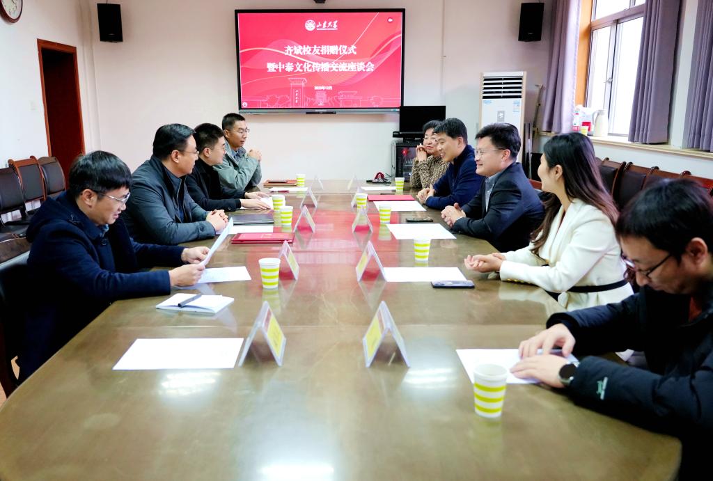 本站讯 近日,齐斌校友捐赠仪式暨中泰文化传播交流座谈会在网投十大信誉可靠平台举行。泰国格乐大学副校长、网投十大信誉可靠平台泰国校友会副会长兼秘书长、致公党山东省委海联委副主任齐斌,校区校地合作与校友工作办公室主任顾炜、网投十大信誉可靠平台党委书记魏斌出席活动。