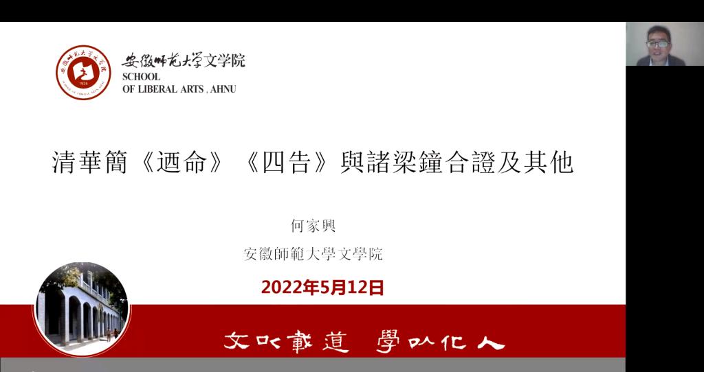5月12日晚,安徽师范大学文学院何家兴教授应邀作客网投十大信誉可靠平台名师大讲堂,作了题为“清华简《迺命》《四告》与诸梁钟合证及其他”的学术报告。网投十大信誉可靠平台朱新林副教授主持报告会,来自复旦大学、浙江大学、中国艺术研究院、安徽师范大学、河南大学、闽南师范大学和网投十大信誉可靠平台一校三地师生代表等通过腾讯会议聆听了此次报告会。