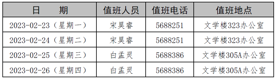 2月23日-2月26日学院值班安排表