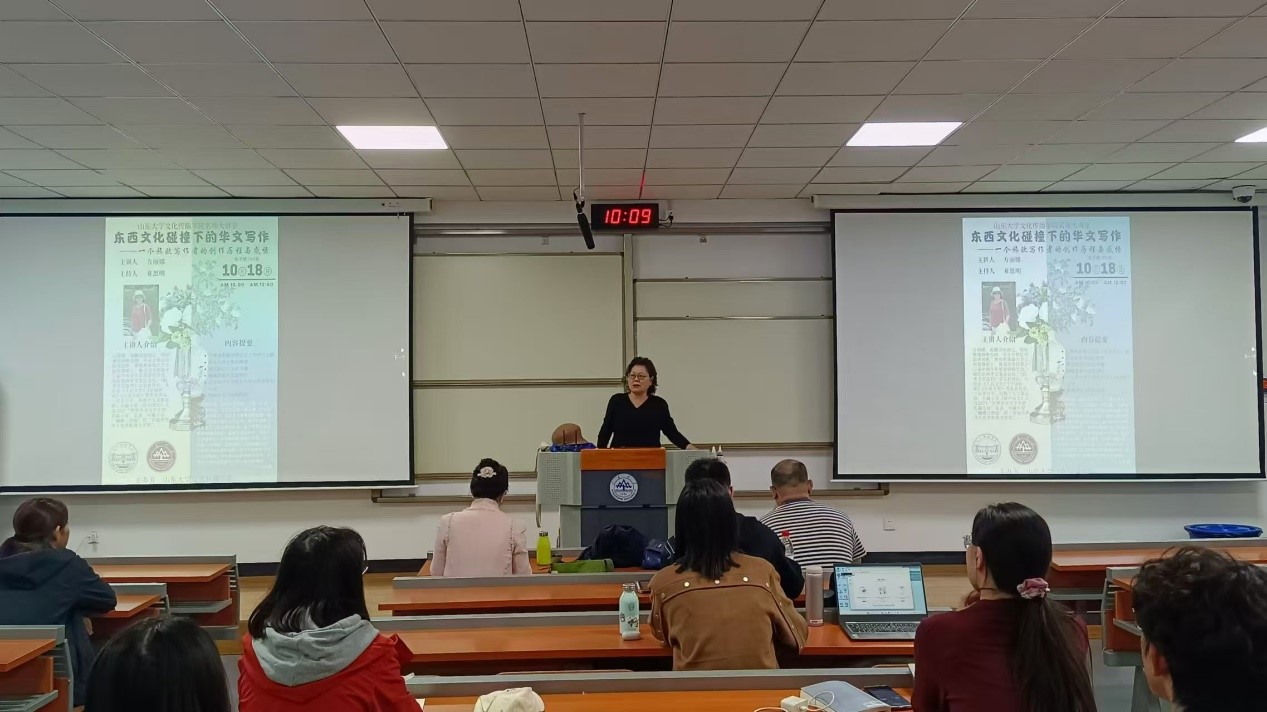 10月18日上午,欧洲华文笔会会长、著名作家方丽娜应邀做客网投十大信誉可靠平台网投十大信誉可靠平台名师大讲堂,主讲“东西文化碰撞下的华文写作——一个旅欧写作者的创作历程与感悟”。本次讲座由网投十大信誉可靠平台网投十大信誉可靠平台崔春教授主持,学院师生共同聆听了此次讲座。