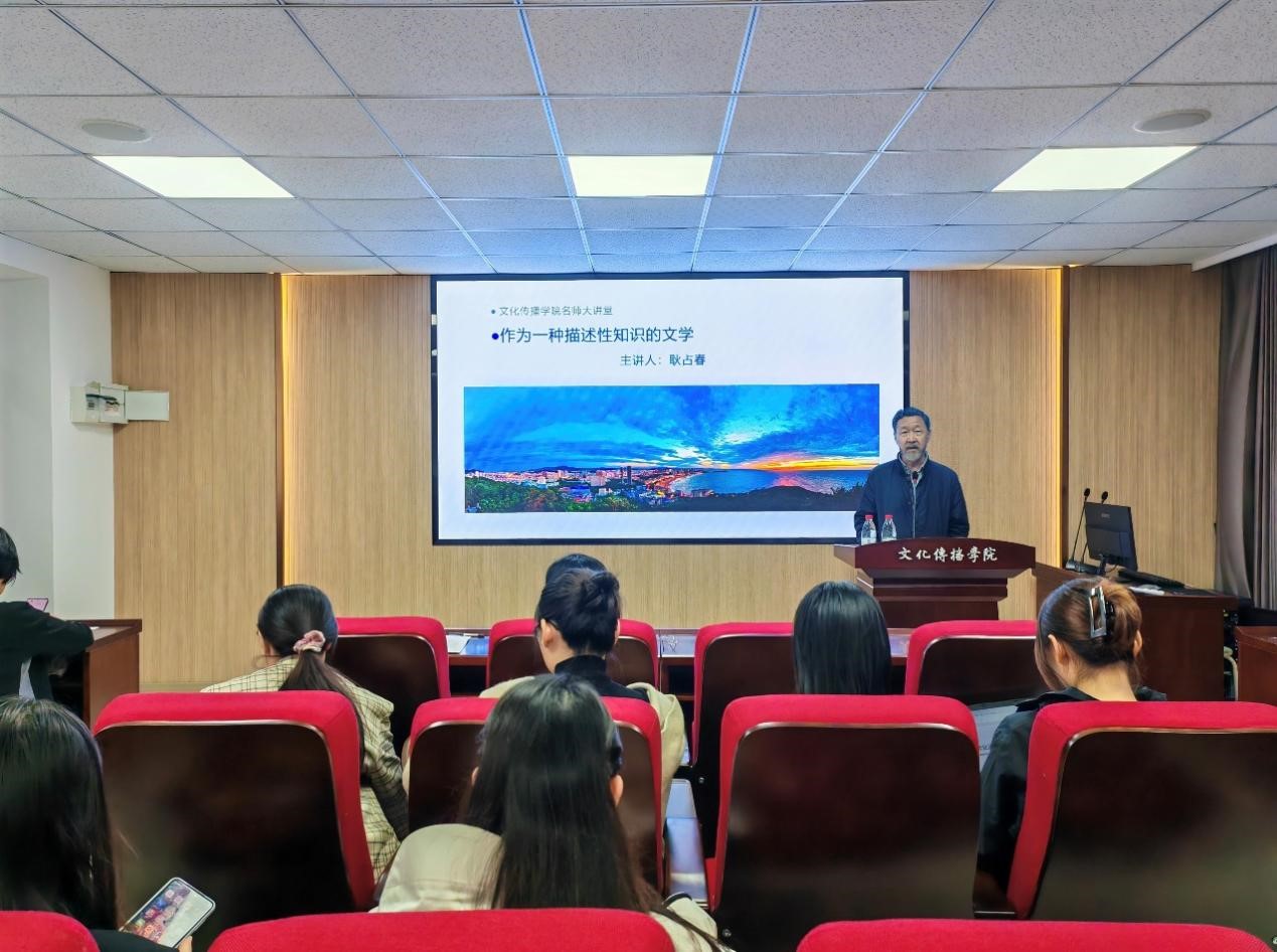 10月18日晚,河南大学教授耿占春老师作客网投十大信誉可靠平台网投十大信誉可靠平台名师大讲堂,在文学楼322为校区师生带来题为“作为一种描述性知识的文学”的学术报告。该讲座由张红军教授主持。威海市作家协会的多位作家,海南大学、河南大学的学者,以及十大信誉官网部分老师和研究生参加了此次讲座。