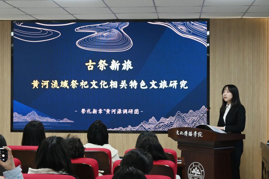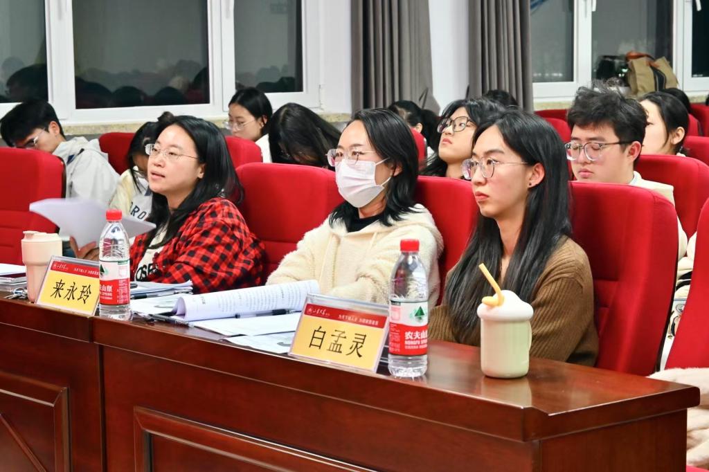 本次答辩会主要包括团队答辩陈述、评委提问与指导两个环节,参与答辩的团队按照抽签顺序就项目的创新亮点、研究方法等关键内容依次进行答辩展示。本届参赛团队的项目主题丰富多样,包括传统文化、网络舆情、地方口音等时事热点内容。现场评委老师针对项目研究内容、研究方法及项目现实意义等方面进行了提问,并就项目文本撰写的规范性和逻辑性、项目具体内容的设计安排以及PPT的设计展示等多个方面,为各团队提供建议和指导。来永玲老师提出要从小切口入手,明确项目受众群体并进行内容和形式上的创新等建议。巩晓玲老师针对答辩展示建议各团队的成果展示中,图表要与文字紧密联系、相辅相成。各团队认真听取了评委老师的指导意见,积极与老师们展开交流,力求在后续筹备中不断提高项目质量,优化项目内容。