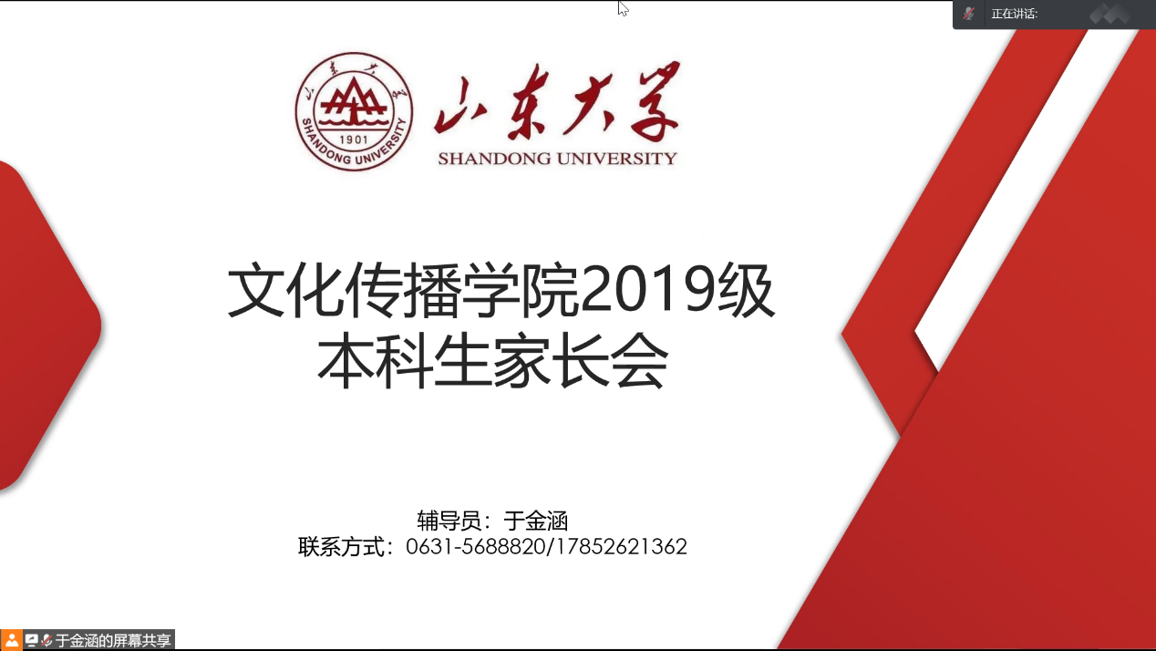 本站讯 11月24日上午,网投十大信誉可靠平台2019级本科生家长会于腾讯会议线上召开,2019级辅导员于金涵主持会议,2019级全体学生家长参加本次会议。